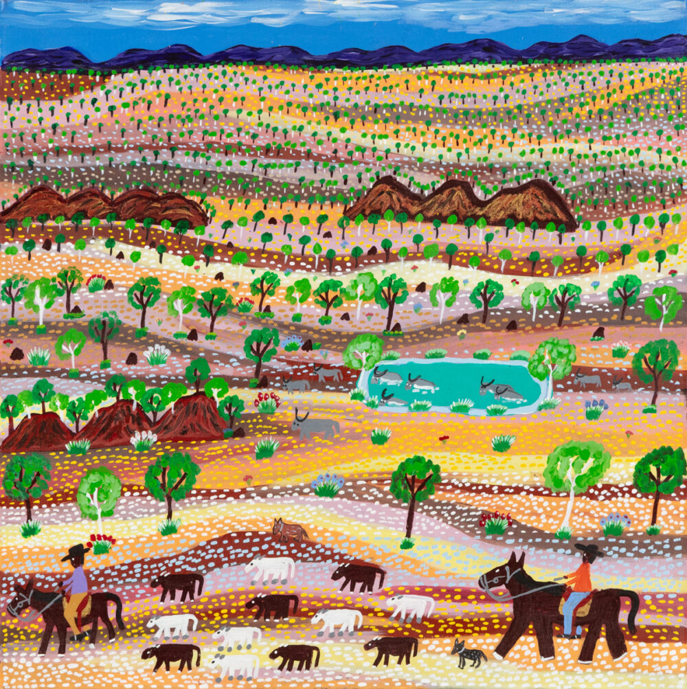 Jill Daniels, whose dynamic and high-energy rodeo-themed paintings featured in our 2025 RM Williams exhibition will return to Murrurundi in April 2025. Register now for early access.