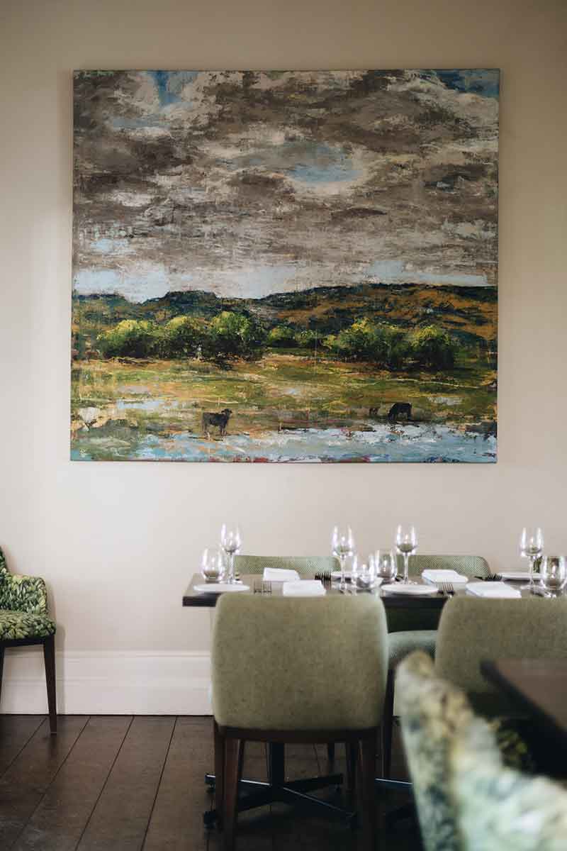 Today, the building has been restored with interiors by well-known Melbourne-based interior designer Adelaide Bragg who grew up in the area. The result is an elegant space hung with a large landscape by painter Lucy Vader, who often works from her studio on the Liverpool Plains, and still-life works by Catherine Hickson.