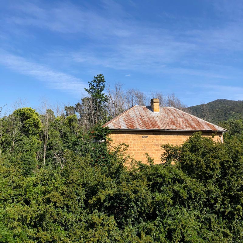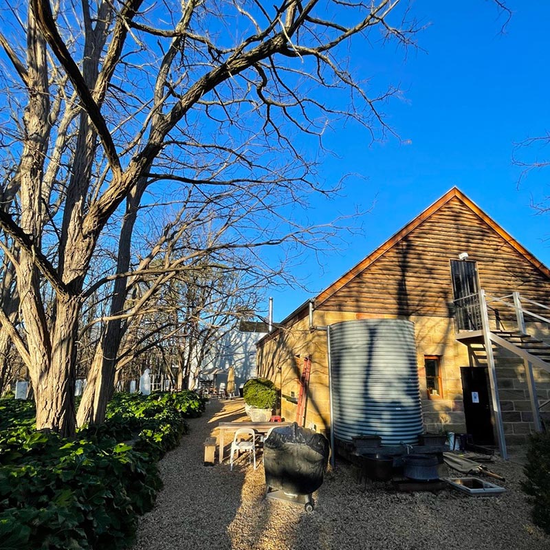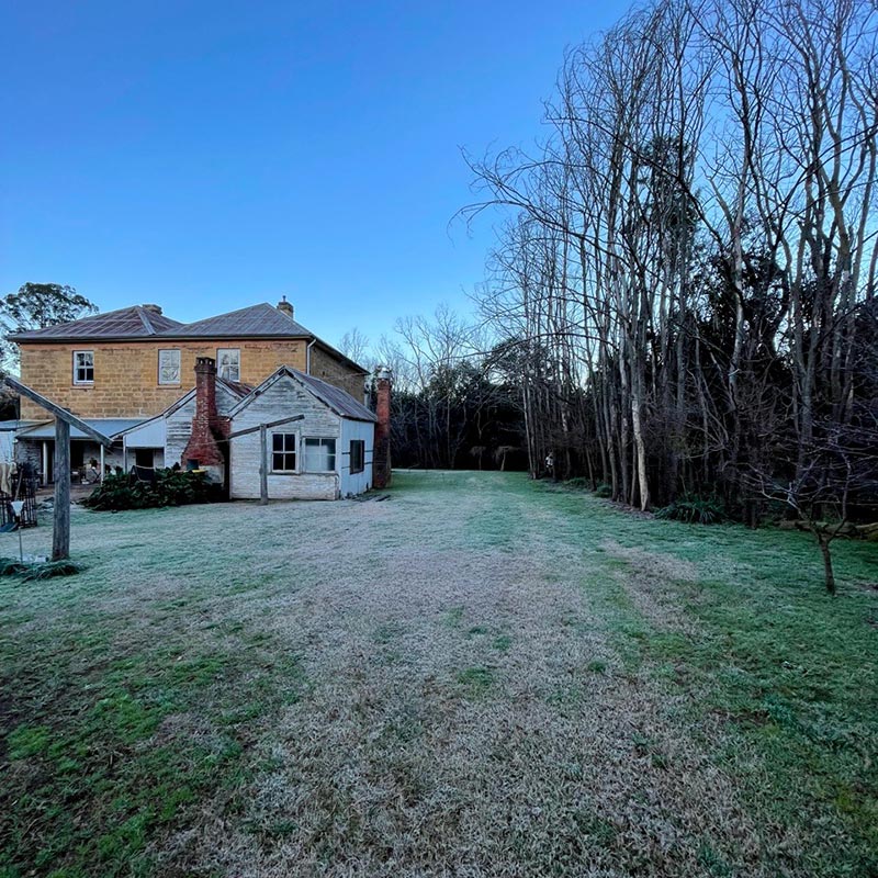 Like much contemporary living, the garden is intended to be an extension of the house. Above all I want the garden to complement the art gallery. Large sculptures will one day be placed in a parkland setting – a joy that one is unable even to consider in Sydney. I want the beauty within the four walls of the former convict cell block and new gallery to be echoed within the garden. The buildings themselves are on the whole old and established. The house and stables were built between 1840-1842, from locally quarried sandstone, for the A.A. Company surveyor, Henry Dangar. When Nellie’s great-great grandfather bought the house, it was called The White Swan Inn. Later it was known as The Woolpack Inn and then The Mountain View Inn, finally being renamed Bobadil House in the 1860s. Maintaining the architectural simplicity of the buildings, which are early Victorian bordering on the austerity of the Georgian, the garden is straightforward and largely no nonsense.