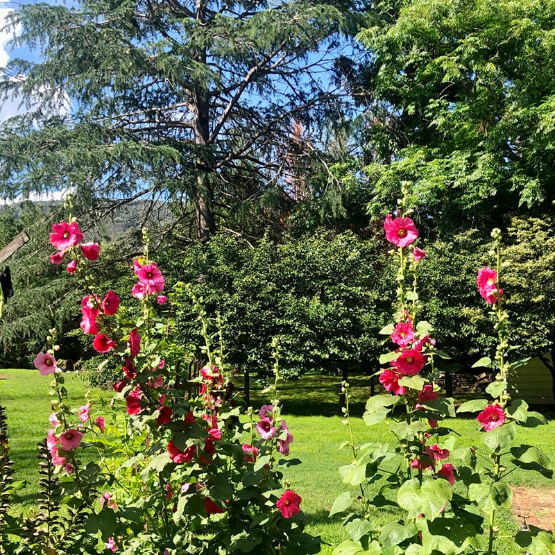 I like trees. I think in another life I was an Edwardian tree-hugger. Hopefully a wealthy, privileged, landed and wearing-of-tweed one, but a tree- hugger nonetheless. So, the garden is largely one of trees, with one significant garden bed – populated in summer predominantly by Hollyhocks (Alcea) and foxgloves (Digitalis). In the Long Bed I am not one for colour schemes, preferring a jolly good sprinkling of self-sowns. Self-sown flowers are a bit like self-made people, in the end you reap a vigorous mixed bunch that do not always play well together in the sandbox – their fission however, is most stimulating.