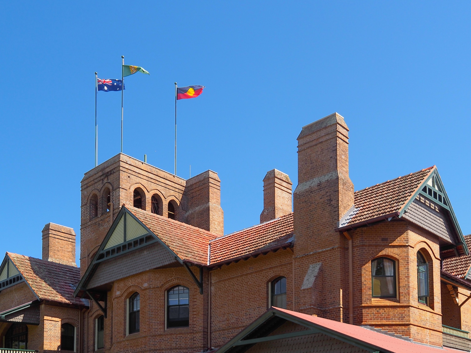 Also in the main street is the School of Arts (1869), its red-brick walls a joy to behold against a blue sky. Sir Henry Parkes delivered his fiery and impassioned speech advocating for the Federation of the Australian colonies from the building’s Banquet Hall, now part of a small but fascinating, and moving, museum. The room is hung with all the variations of the Southern Cross flag alongside a single Australian Aboriginal Flag. A museum label below this flag outlines, matter of fact, the astronomical cost of Federation for Indigenous Australians and the near-century it took to begin the correction.