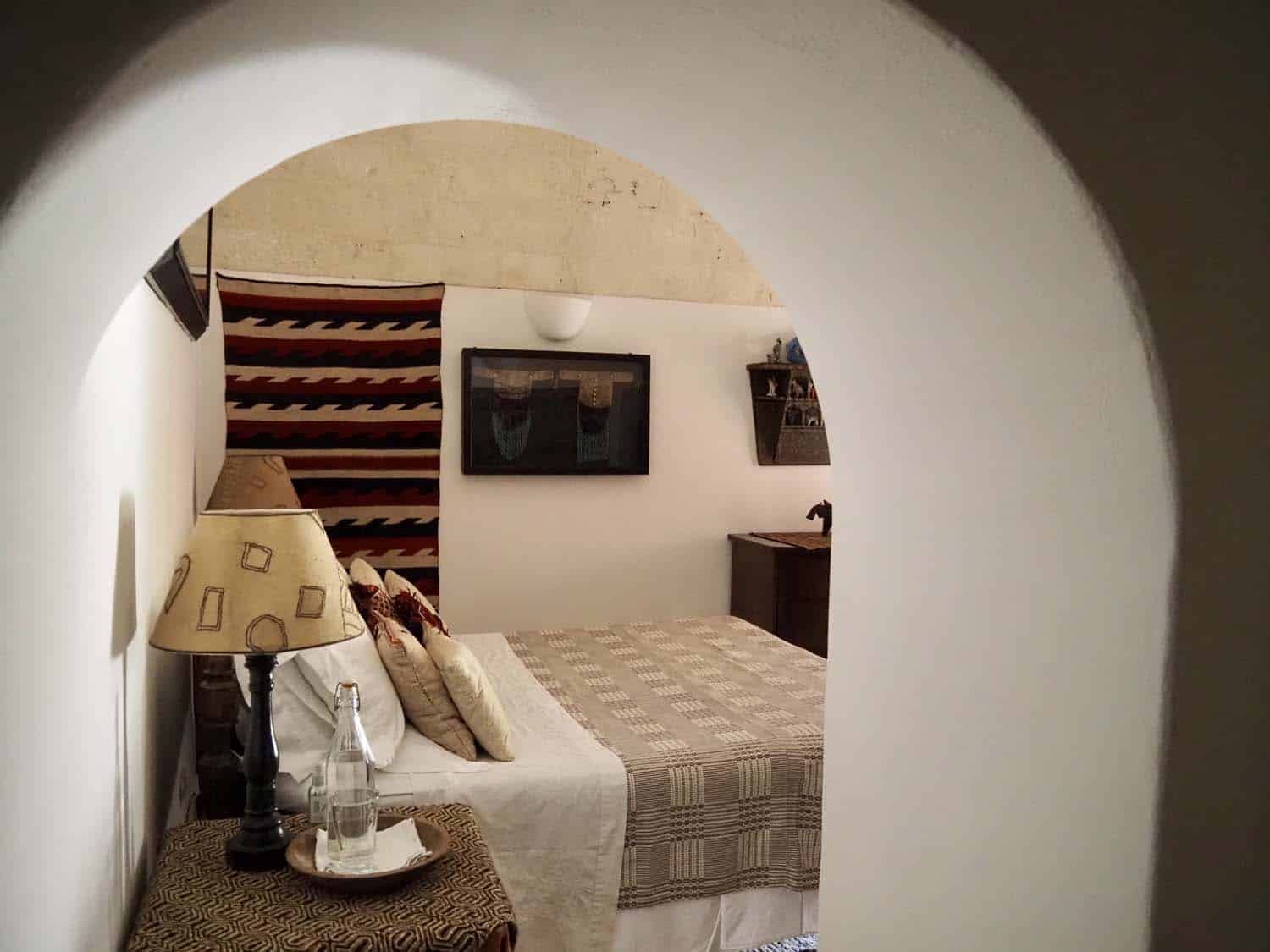 A writing highlight was my stay at Castello di Ugento, a sprawling and now sumptuous castle dating back to Norman times that has been in the d’Amore family for nearly 400 years. Another was Il Convento di Santa Maria di Costantinopoli, the home and guesthouse of Lord Alistair McAlpine, whose extraordinary collection includes Australian Aboriginal art, wonderful tribal textiles and a lineup of Sidney Nolans. All of which adorns the Convento’s walls, built thick five centuries ago to repel both heat and Turks, according to Athena McAlpine, the late lord’s enchanting Greek wife. And I discovered, thanks to Athena, the Byzantine frescoes covering the walls of the tiny church of Santo Stefano in Soleto, one depicting a Catholic monk as the devil as Salento had been – and the artist obviously was – Greek Orthodox.