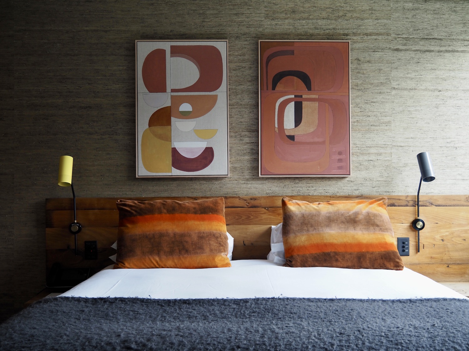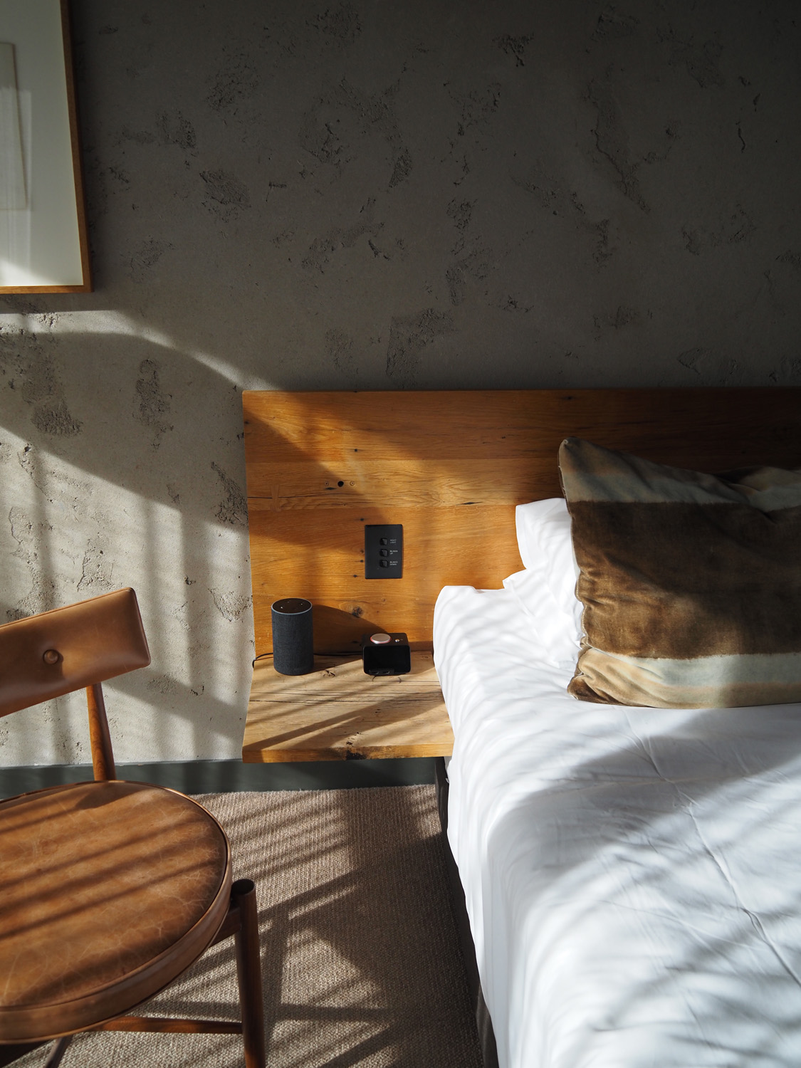 Roy Grounds designed futuristic fantasy, the Shine Dome (1959) for the Australian Academy of Science – the first Canberra building to make the National Heritage List. Across the road in hip and artsy New Acton is the also striking Nishi Building (2013), where several floors have been given over to boutique hotel, Ovolo Nishi (formerly Hotel Hotel). A visually jarring staircase lined in “flying” lengths of horizontal timber – a mix including offcuts from Nishi’s building site and wood reclaimed from a demolished basketball court – leads up to a carved sequence of bunker-like spaces, softened by all manner of cool vintage furniture, quirky objects and art. Plant-based Monster Kitchen and Bar is a Sorrento-meets-South-of-France mashup of giant terrazzo, 50’s furniture and Jansen-esque brass palm trees, where Peri Peri Roast Cauliflower and Stuffed Savoy Cabbage will be sure to sate even the most hardened carnivore. Rooms are quiet, textured spaces, with off-form concrete walls, grass-clothed ceilings and furry blankets on beds.