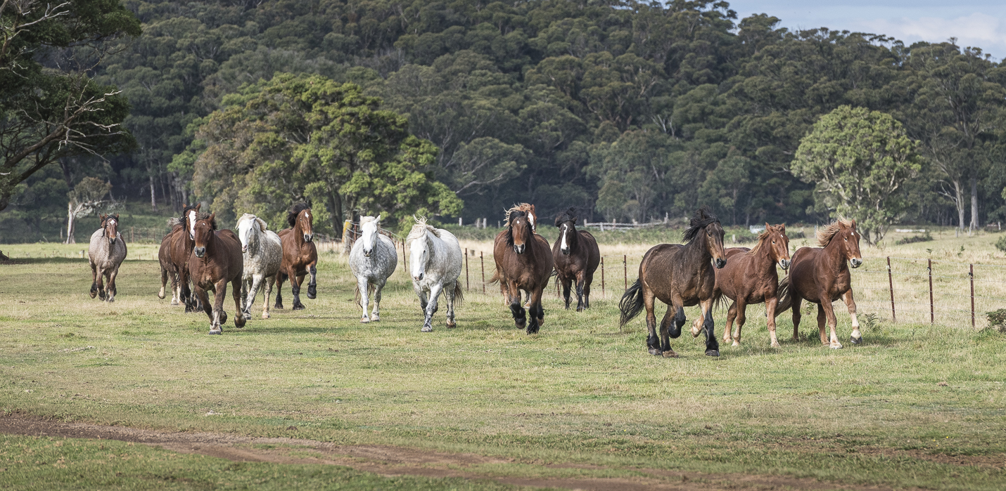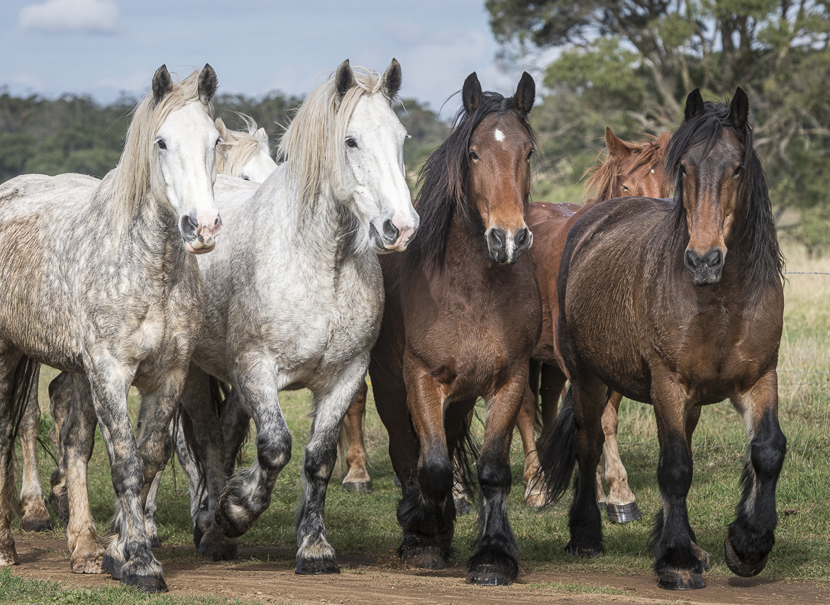 The Australian Draught Horse was bred to suit Australia’s harsh climate and conditions, as well as having a quiet temperament. Their breeding was influenced by the major draught horse breeds – Percherons, Shires, Belgians, Suffolk Punch and Clydesdales – and they were used for agricultural work, including forestry and transportation.