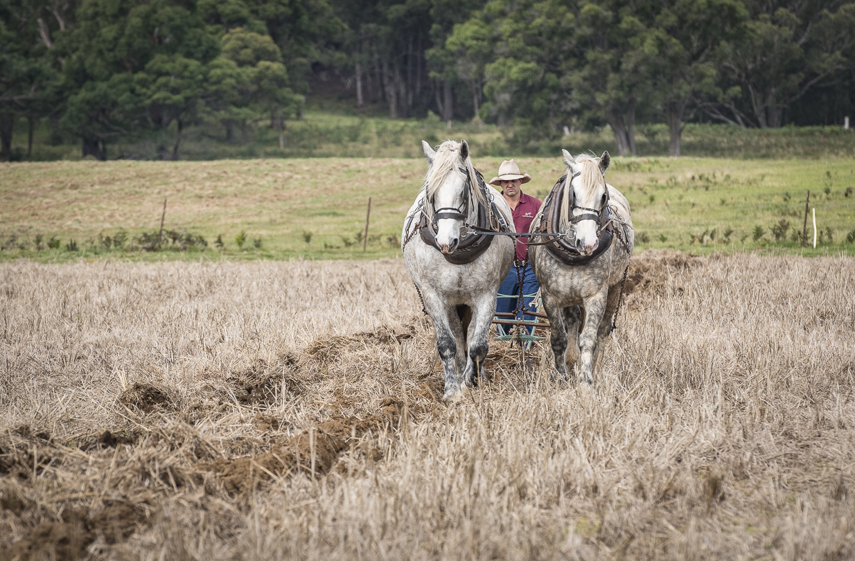 Aleks participates in the arcane world of single furrow ploughing – indeed he won last year’s Golden Plough, the most prestigious competition in Australia – but for many years he was happy to stay at home rather than go on the road to show off his horses and skills at country shows. This was partly because of the significant costs involved, including spending time away from his plumbing business.