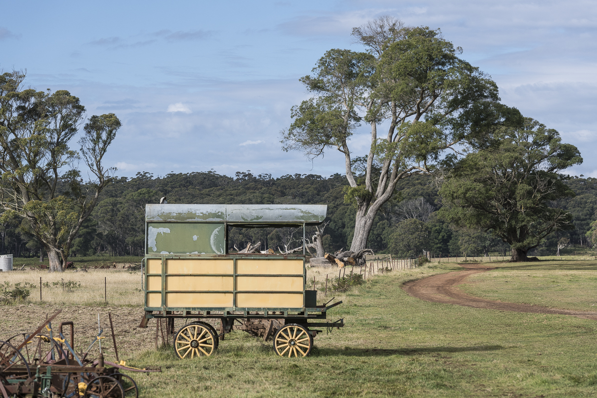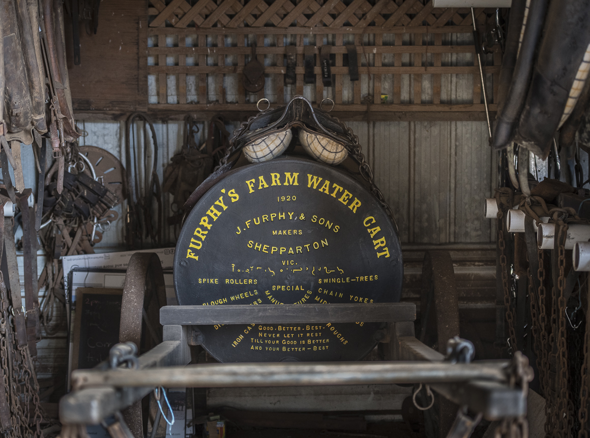 The Berzins own hundreds of horse-drawn machines, including a 10-tonne Bennett Wagon that was built in 1913 by renowned craftsman James Bennett. Each Bennett Wagon had its own name painted on the side, and the one owned by the Berzins is named All The Go.