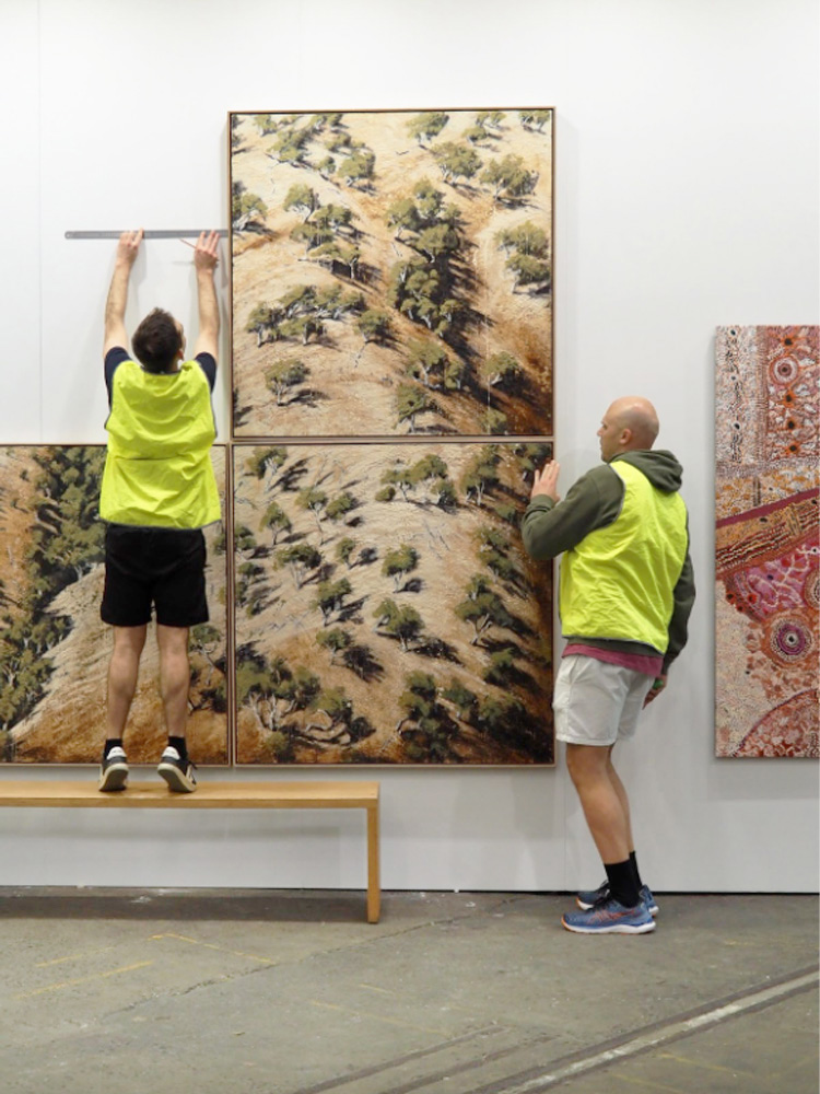 Fast forward to 2023 at Carriageworks, the cavernous 1880s railway workshop turned multi-arts cultural precinct in Eveleigh that is home, each September, to the art fair Sydney Contemporary. Arriving early, wearing the mandatory yellow vest as cherry pickers whizzed down aisles and gallerists put the finishing touches on their stands, I was thrilled to see a group of Wiggan’s Ilma inside the main hall.