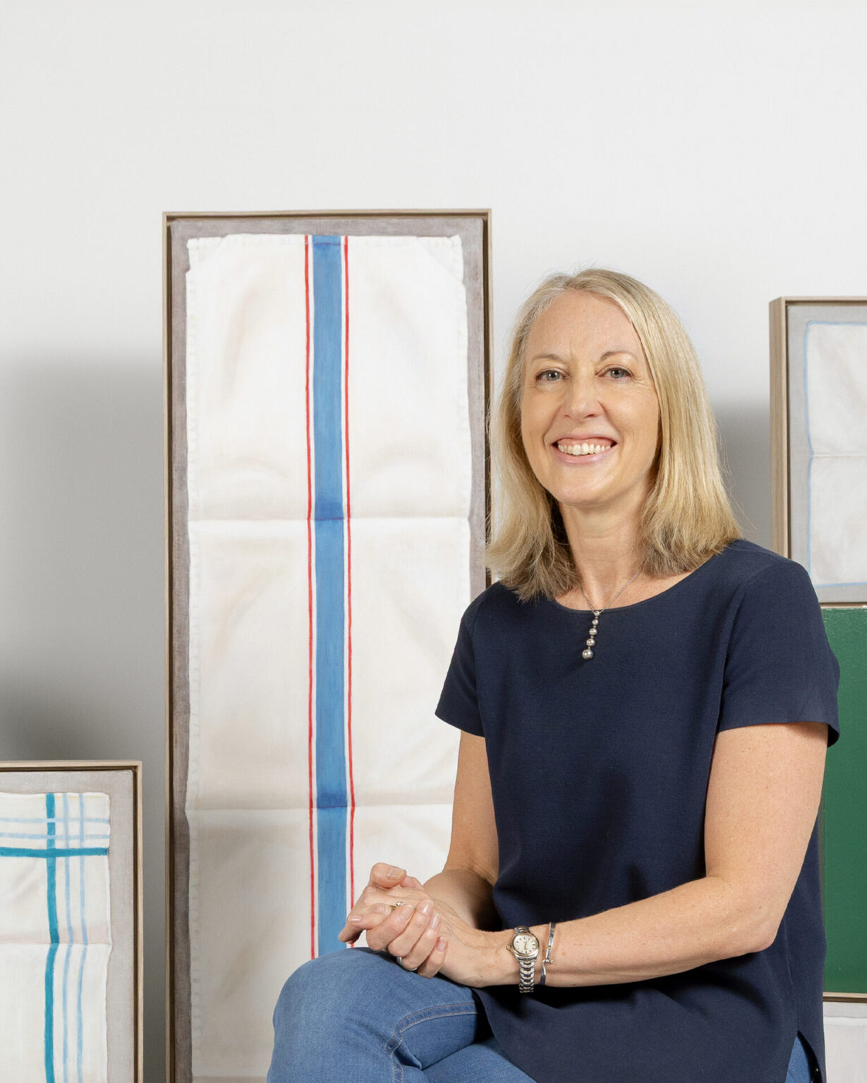 “The series explores the interplay between fabric folds, the technique of trompe l’œil, and the structure of the grid,” says the artist. “Everyday items such as handkerchiefs and tea towels felt like a familiar starting point. They are recognisable to most people, which means they often carry personal associations. While I wasn’t aiming for a specific emotional response, many viewers have mentioned feeling a sense of nostalgia. What appeals to me is that when you unfold a folded piece of fabric, it reveals a grid pattern. The process of unfolding introduces disruptions to the grid, and that creates a visual tension between order and disorder that I find compelling.”