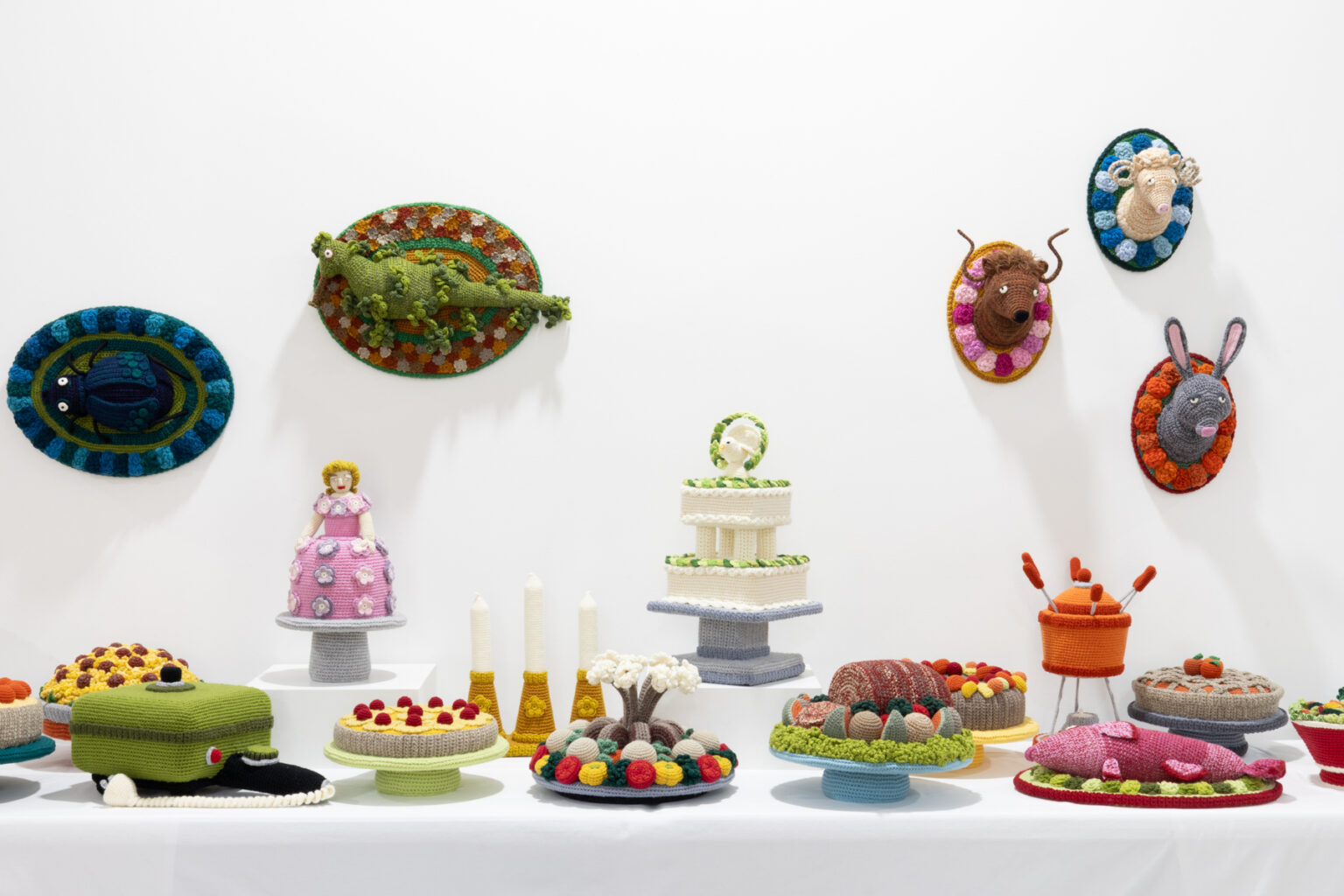 By transforming mass-produced objects into singular works of art and transposing homespun craft to the realm of soft sculpture, Smith upends distinctions between high and low taste with lashings of exuberance, camp irreverence and more than a soupçon of nostalgia, whimsy and wit.