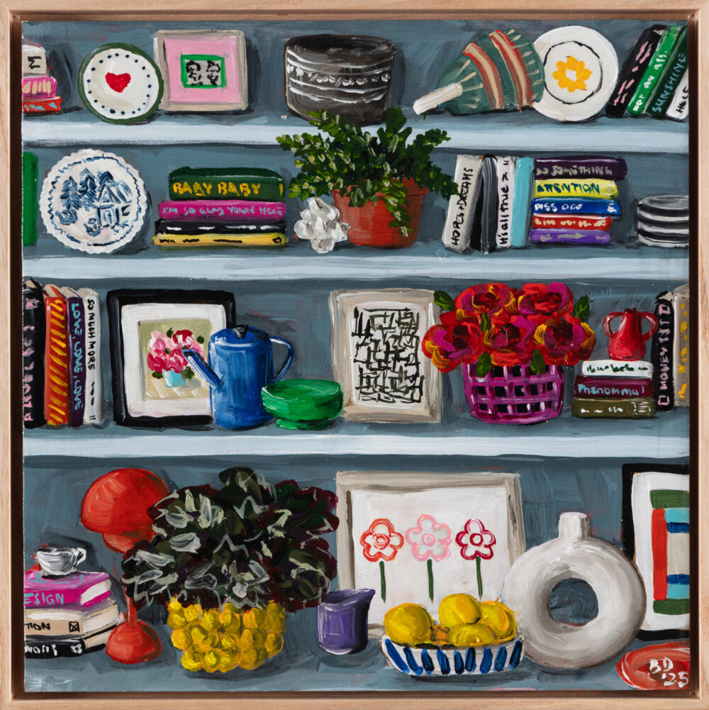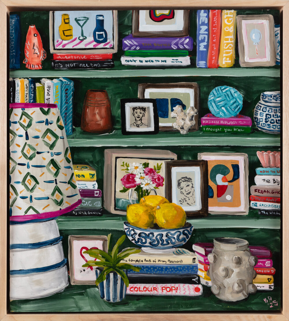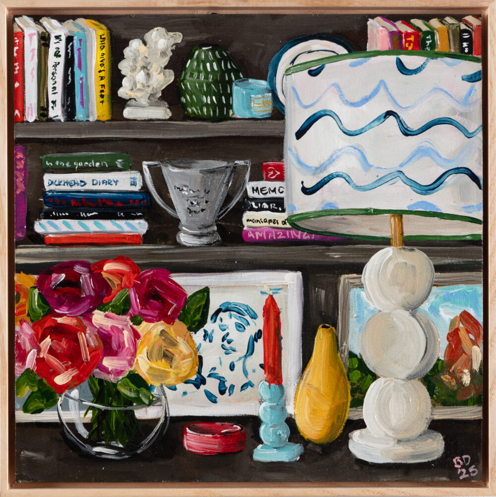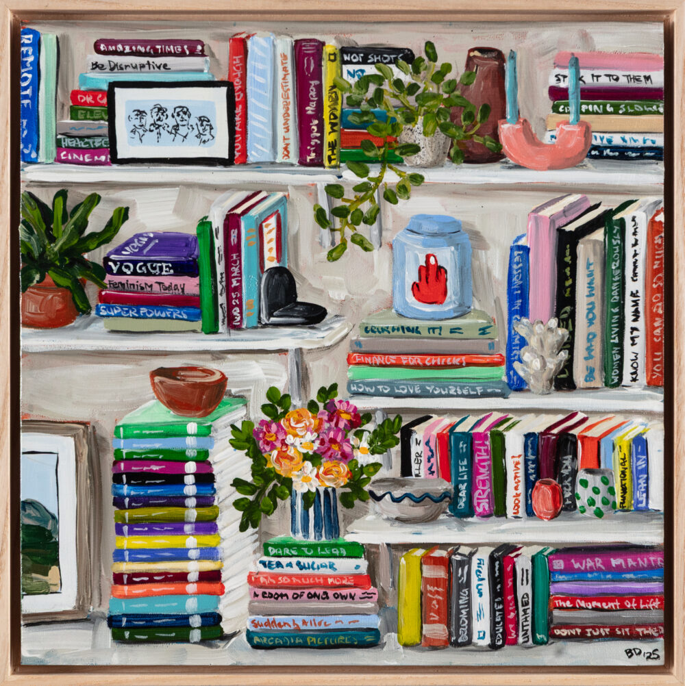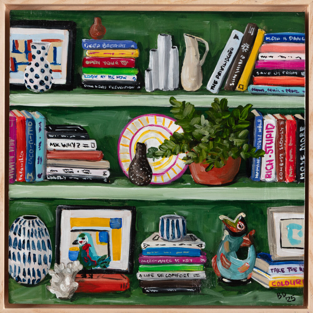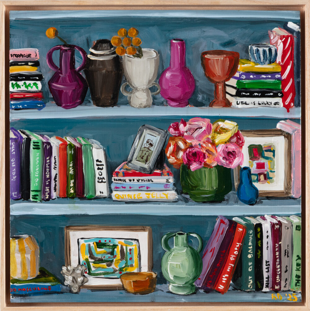 Murrurundi favourite Brooke Dalton returns to the gallery in with a new series of paintings that transport us to a world of interiors lined wall-to-wall with beautiful clothbound tomes. Shelves of Memories celebrates the warm nostalgia and emotional pull of spaces that teem with colourful books, painted ceramics, fresh-cut flowers and collected curios amassed in a spirit of eclecticism and whimsy.