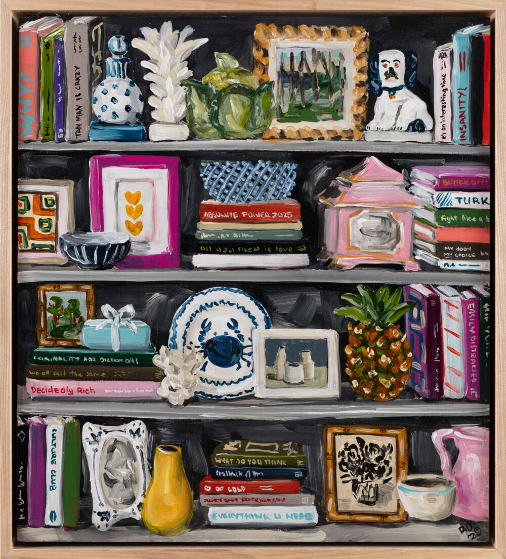 Brought to life with a loose and energetic painting style that perfectly matches the sense of exuberance, more-is-more abundance and bohemian insouciance of the libraries Dalton depicts, paintings from this exhibition are now on view at the gallery.