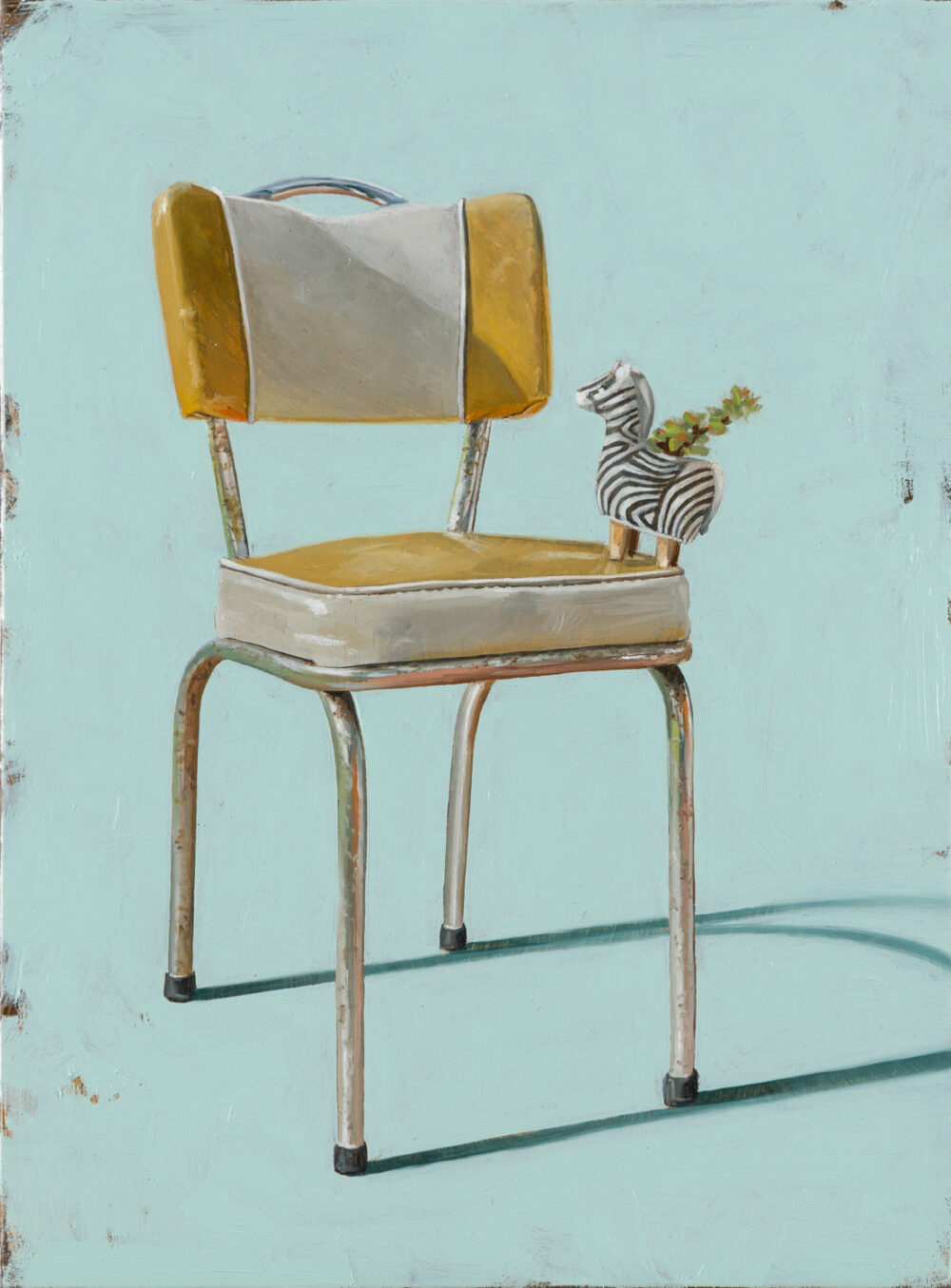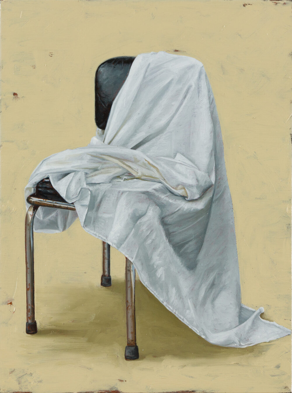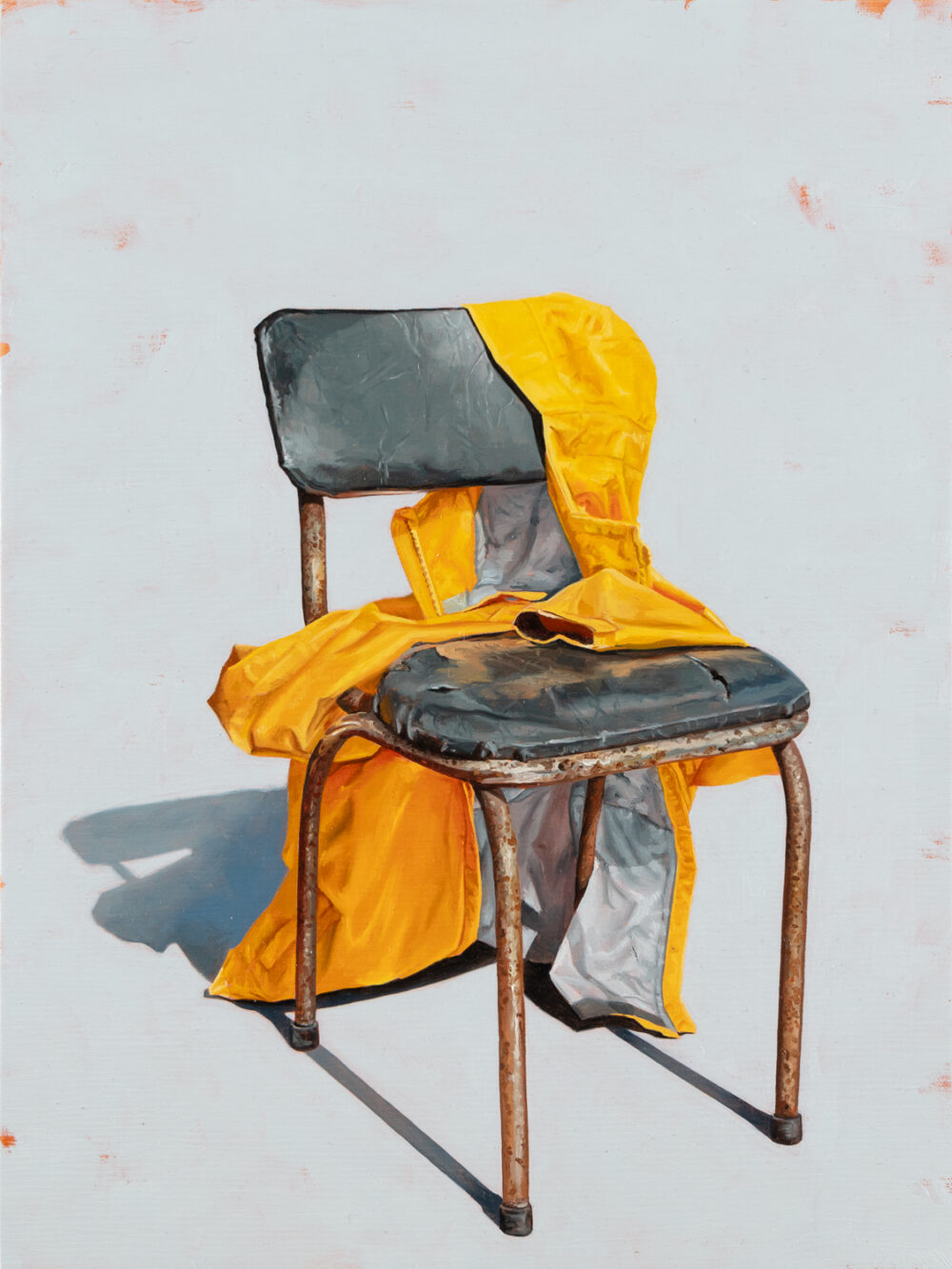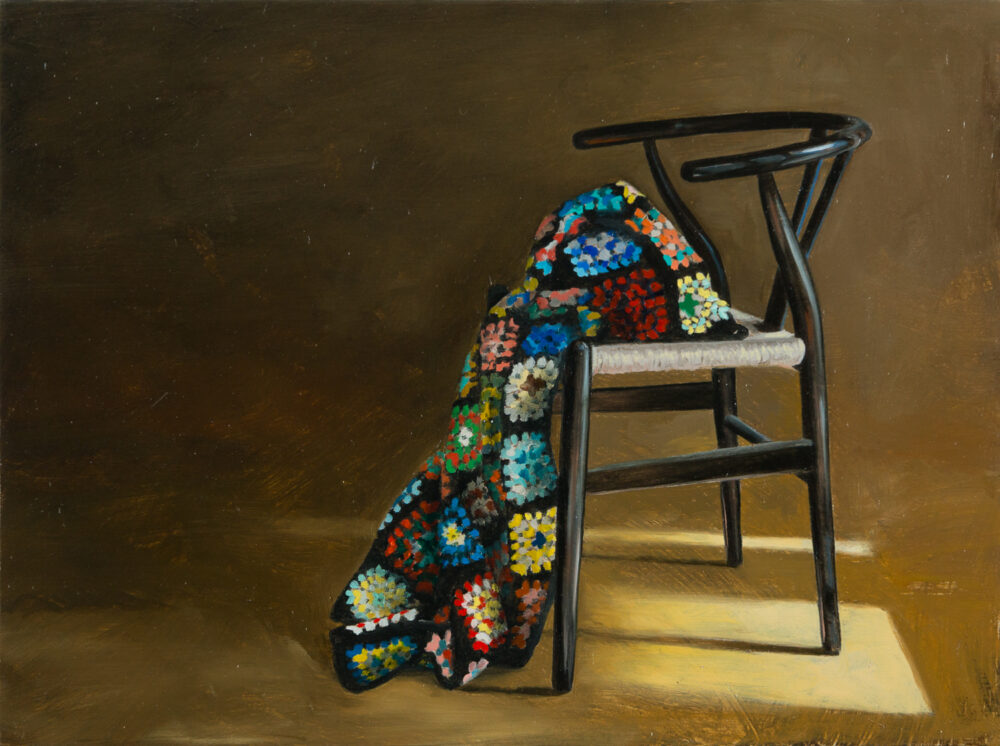 Gustafsson’s compositions ignite a striking interplay of natural and designed elements. Through her recent paintings, the artist recasts chairs as sculptural subjects that strike playful poses, set against minimal spaces of ambiguous planes.
