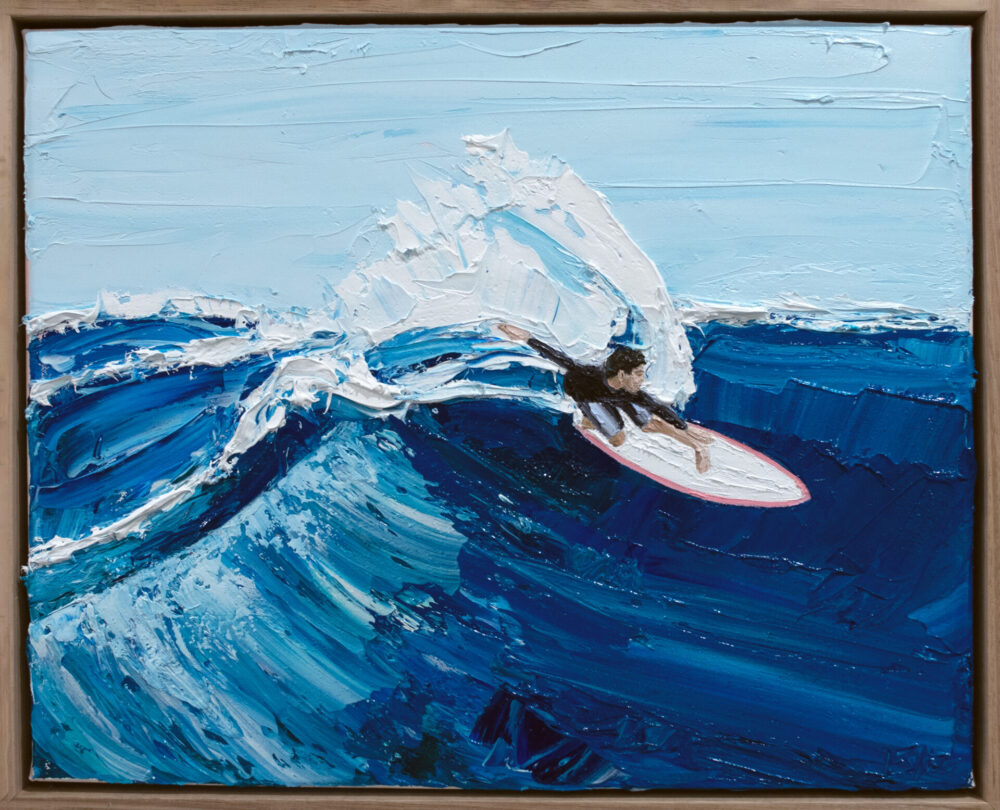 Awash with light and oscillating between crisp and moody blue tones, Eckley’s new series is an invitation to the Harbour City’s sparkling littoral landscapes. “I have thoroughly enjoyed painting this collection and hope it shows in this body of work”.