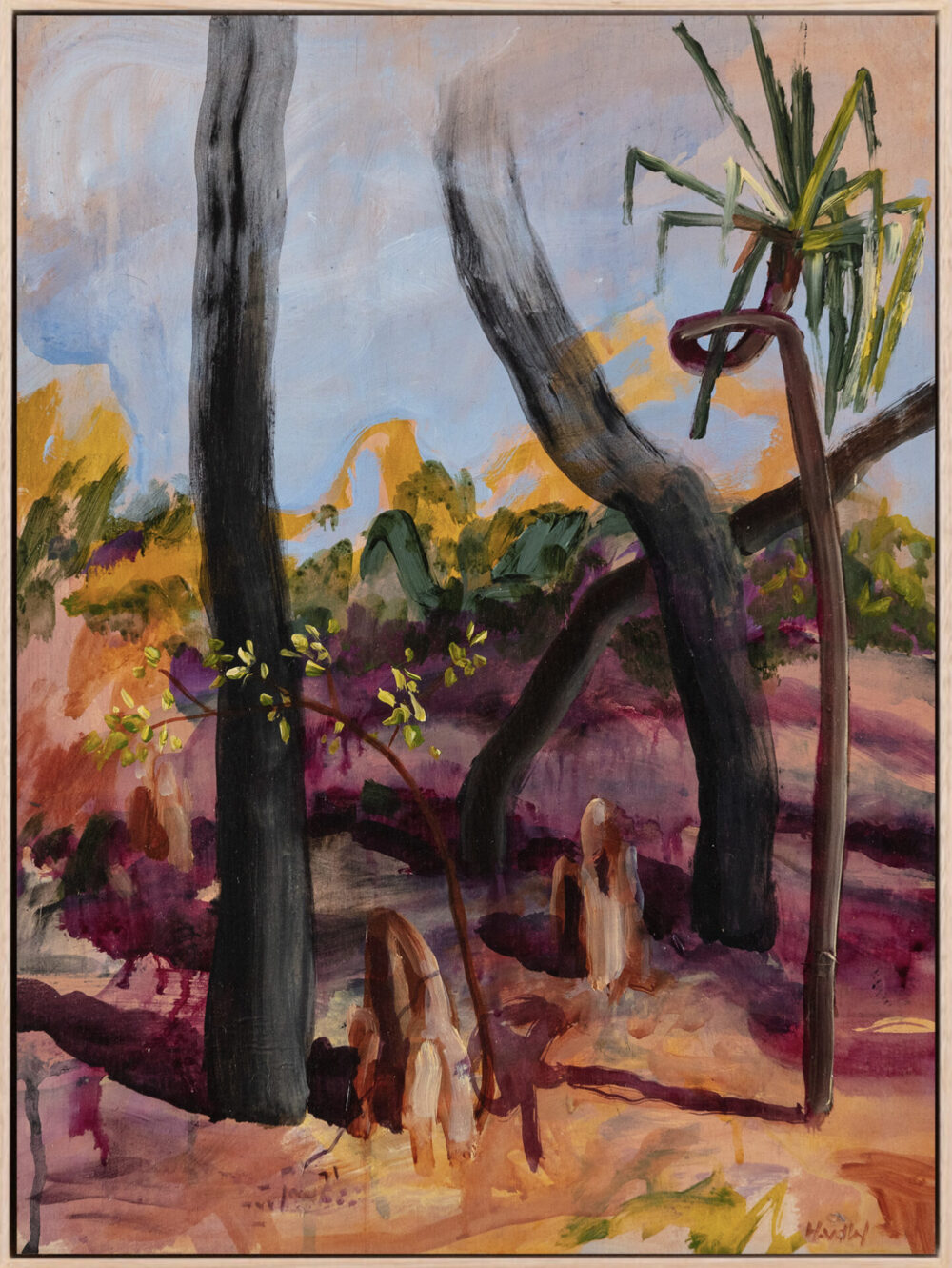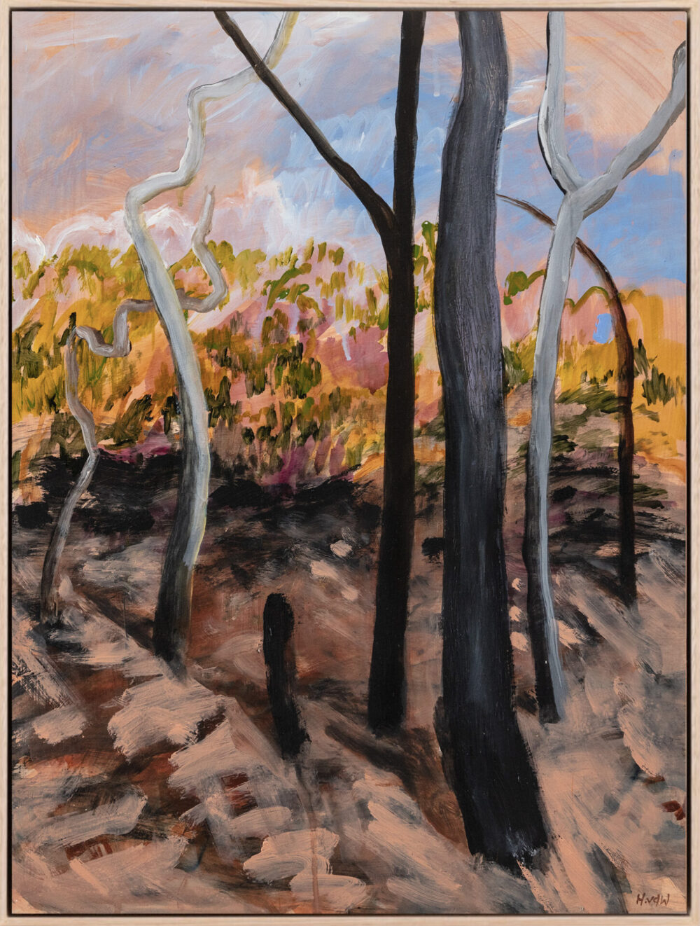 “Hannah paints the abstracted elements, or mind grabs of the land she experiences in her travels. A single detail, within a vast landscape, will capture her attention and become the essence of the whole.