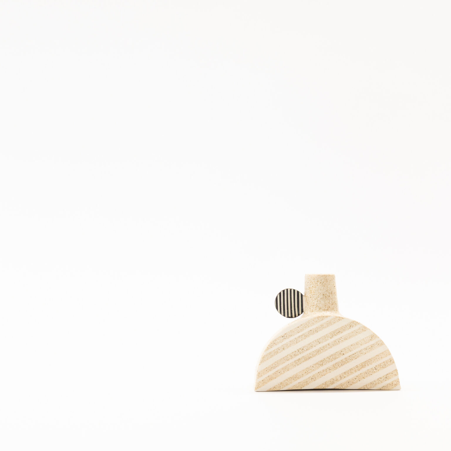 With a poppy, 80’s-inflected palette and an equally electric interplay of geometric shapes, Oh’s newest ceramic works invites a subtel tension between sharp and arresting angularity and the quieter textures inherent to the clay medium.