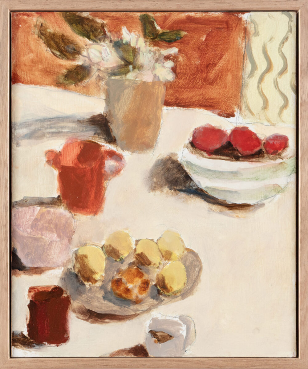 Naarm/Melbourne-based contemporary painter Stacey McCall returns to Michael Reid Murrurundi with Lucent, a sublime new collection of still-life paintings that flowered from the sketchbooks she kept during an extended sojourn in the City of Light. Titled after the gorgeous, gauzy glow that washes through each picture and lights up her elegant, effortlessly arranged accoutrements and tableware, the series sees McCall hone a softly expressive painterly language rooted in tonal underpainting.