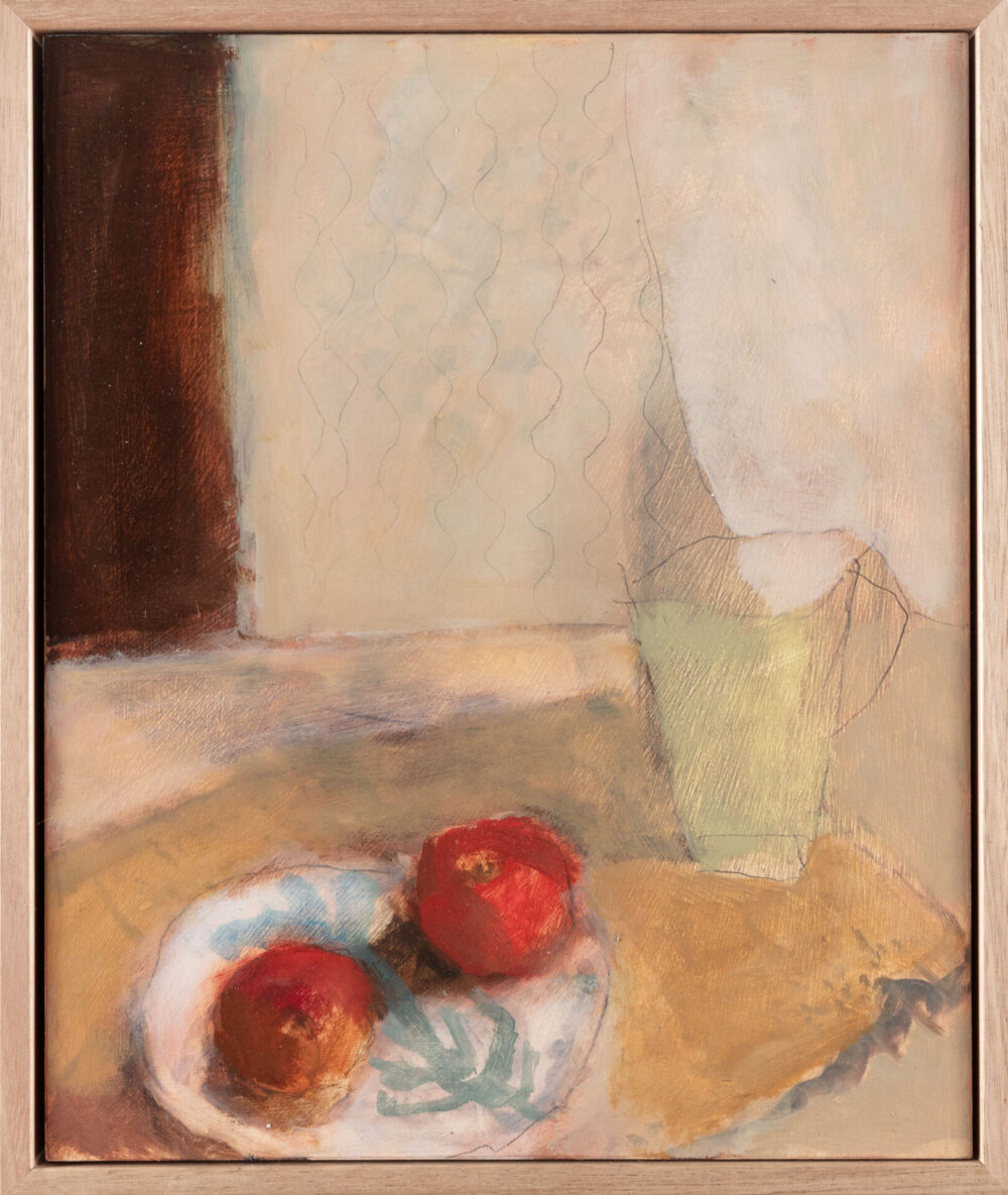 Evoking the essence of her still-life objects with an economy of graceful gestures and pared-back textural markings that emerge through clouds of earthy, peachy tones, McCall’s deceptively simple, deftly realised style feels perfectly attuned to the warm insouciance and easy eclecticism of the Parisian pied-à-terre she temporarily called home. The result is a luminous body of work that expands her distinctive and richly evocative approach to the still-life genre, allowing the cumulative impact of her handmade objects and artfully undone florals and fruit to conjure a familiar yet faraway mood.