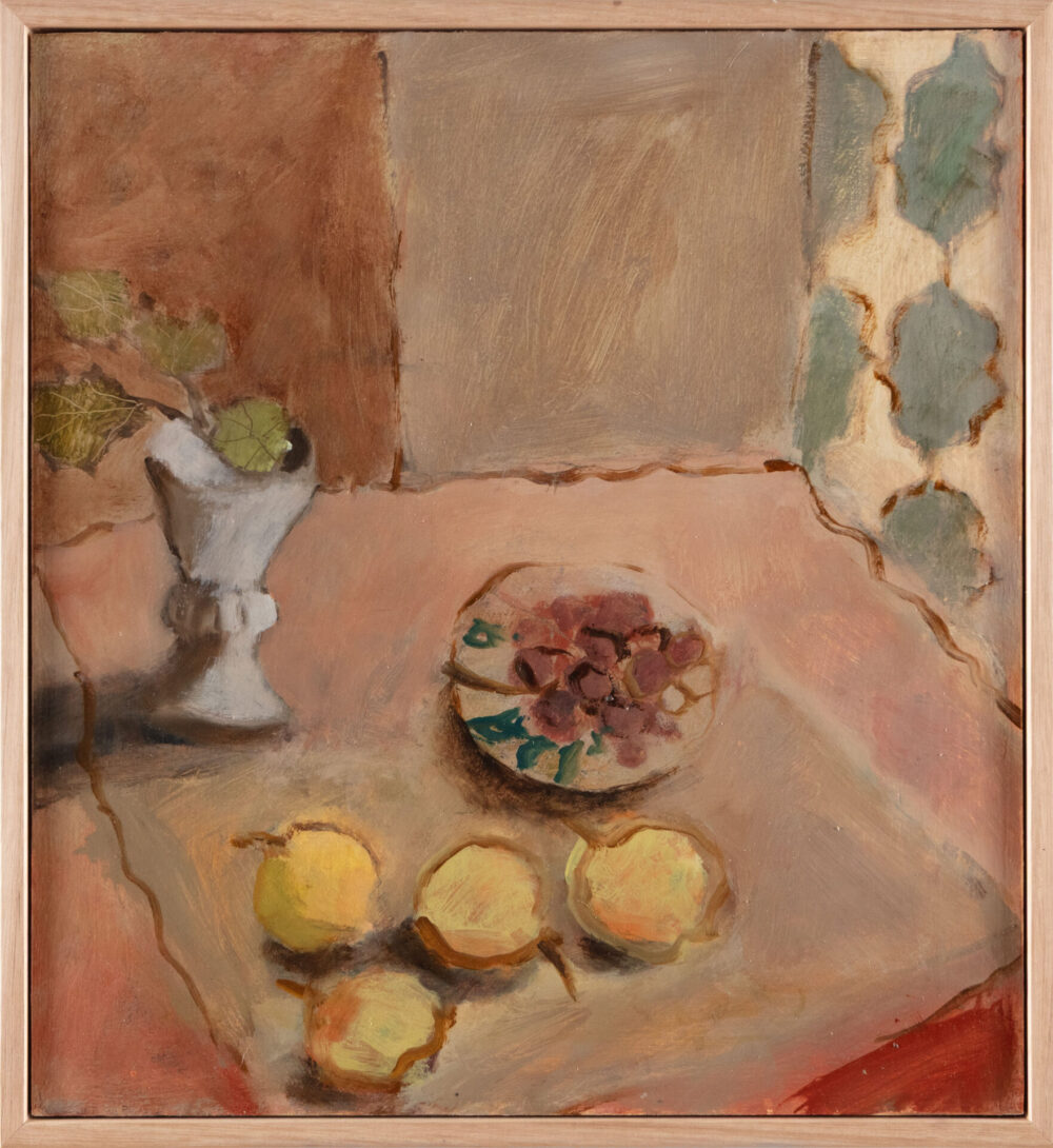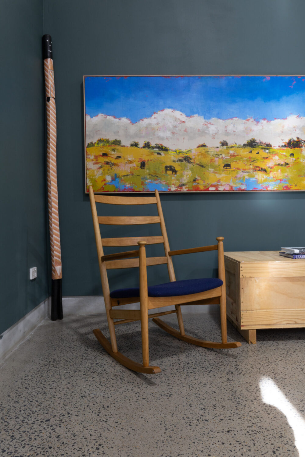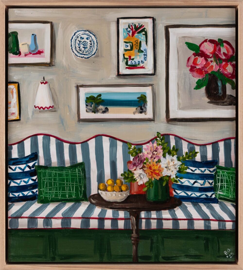 Our art-meets-design display unfolds as a sequence of immersive, evocatively layered living room vignettes, all staged within the Murrurundi gallery. While many featured artists’ works reflect expansive notions of home or present painterly scenes attuned to the gentler rhythms of the interior domain, the richly imagined scenography of Pied-à-terre is itself a paean to the pleasures of home – to the idea of art and design as embedded within an elevated vision of the domestic everyday.