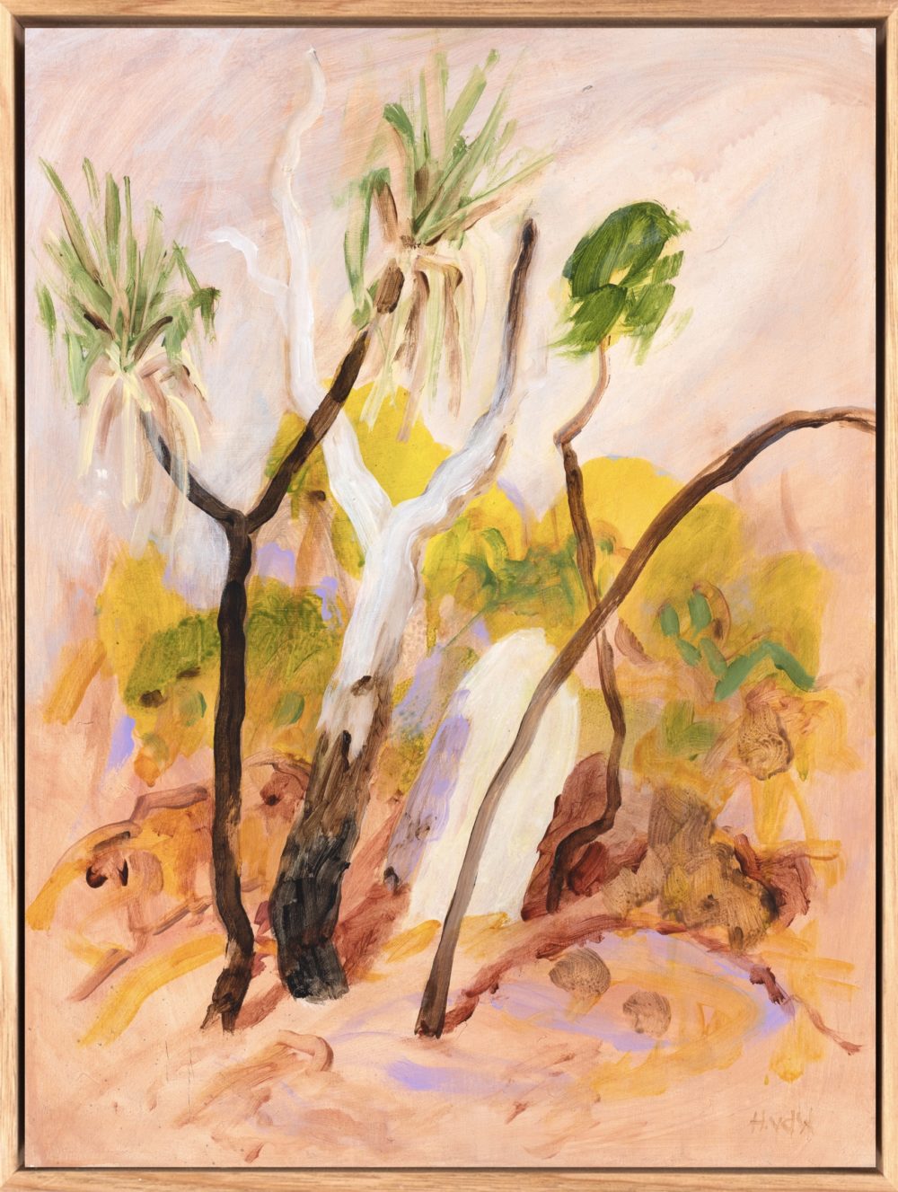 Pink Dust welcomes you into an embrace with the warmth and wilderness of the Northern Territory. Based in Yirrkala, van der Wal has a deep appreciation for her surrounding landscapes (on Yolngu country). Her compositions are the result of many hours driving, walking and wandering through the wild and spiritually heavy country.