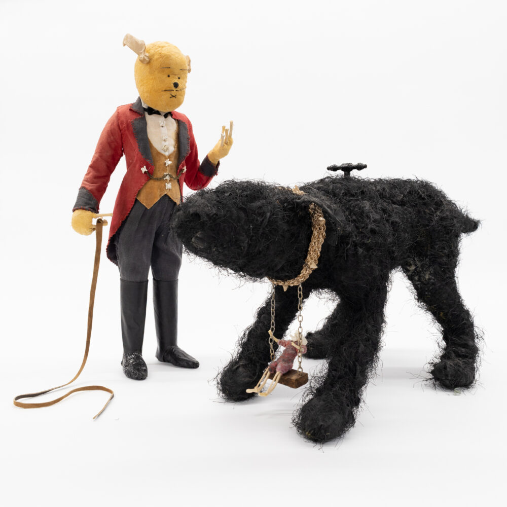 55 x 28 x 15 cm (figure) 33 x 30 x 83 cm (dog)