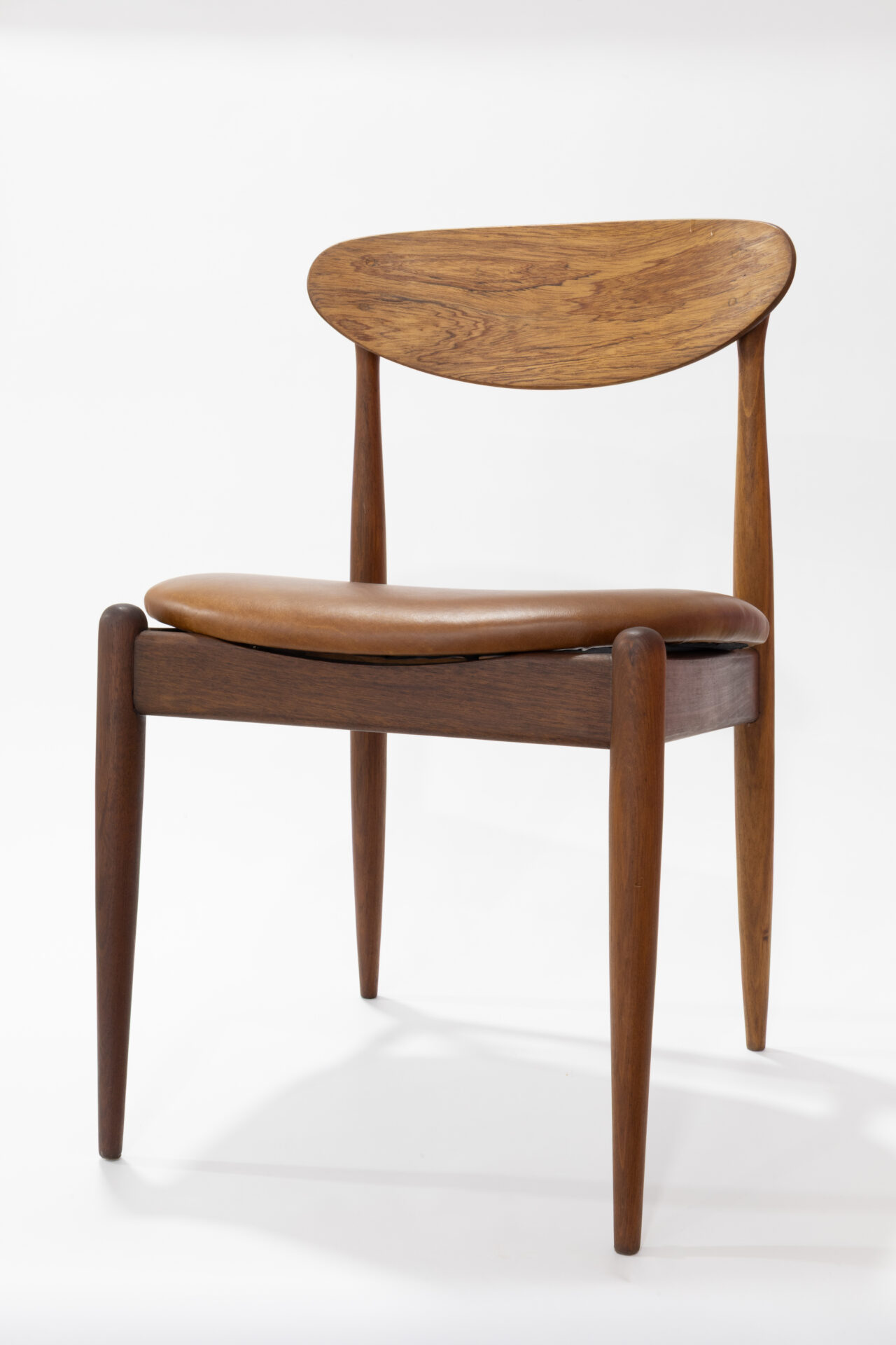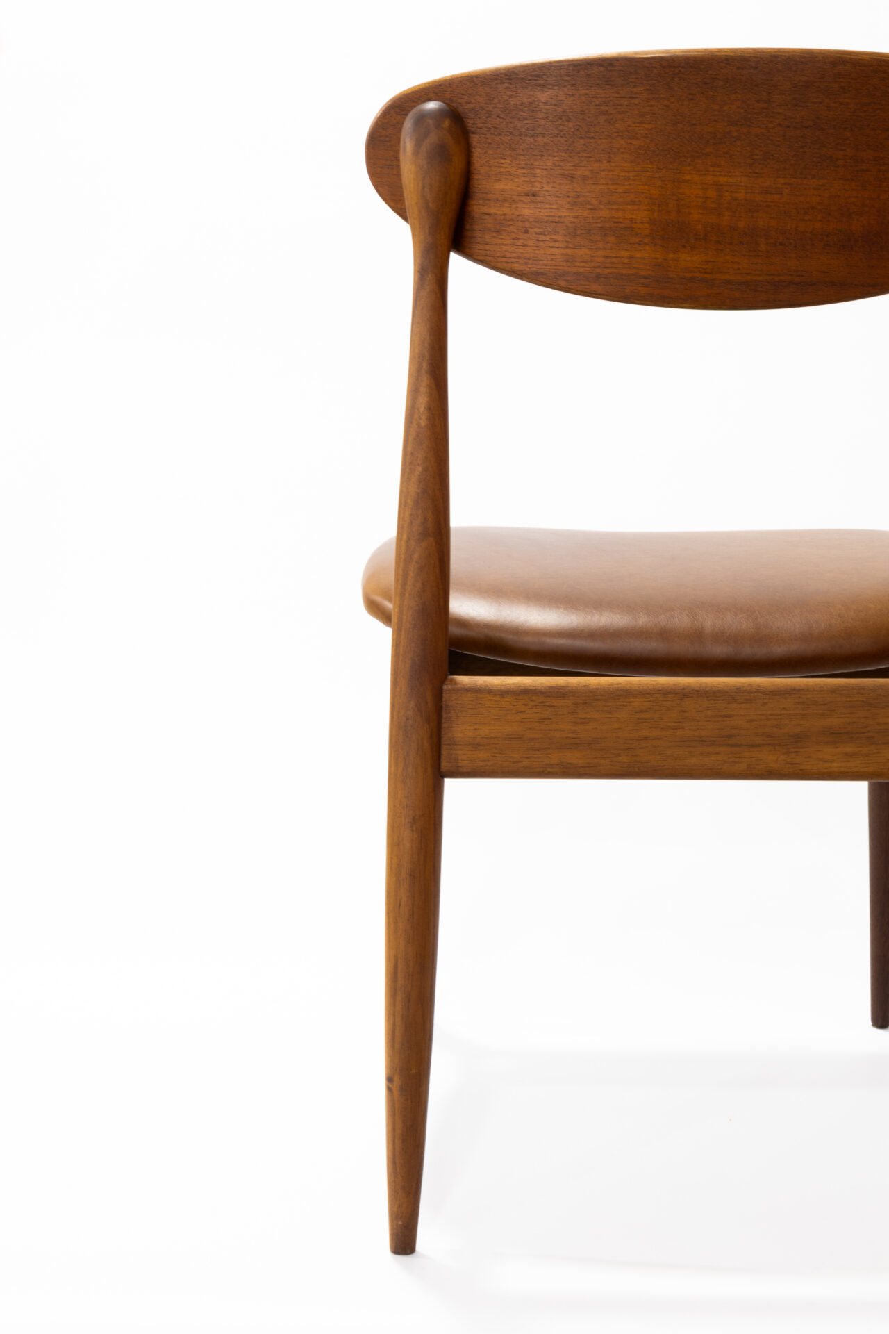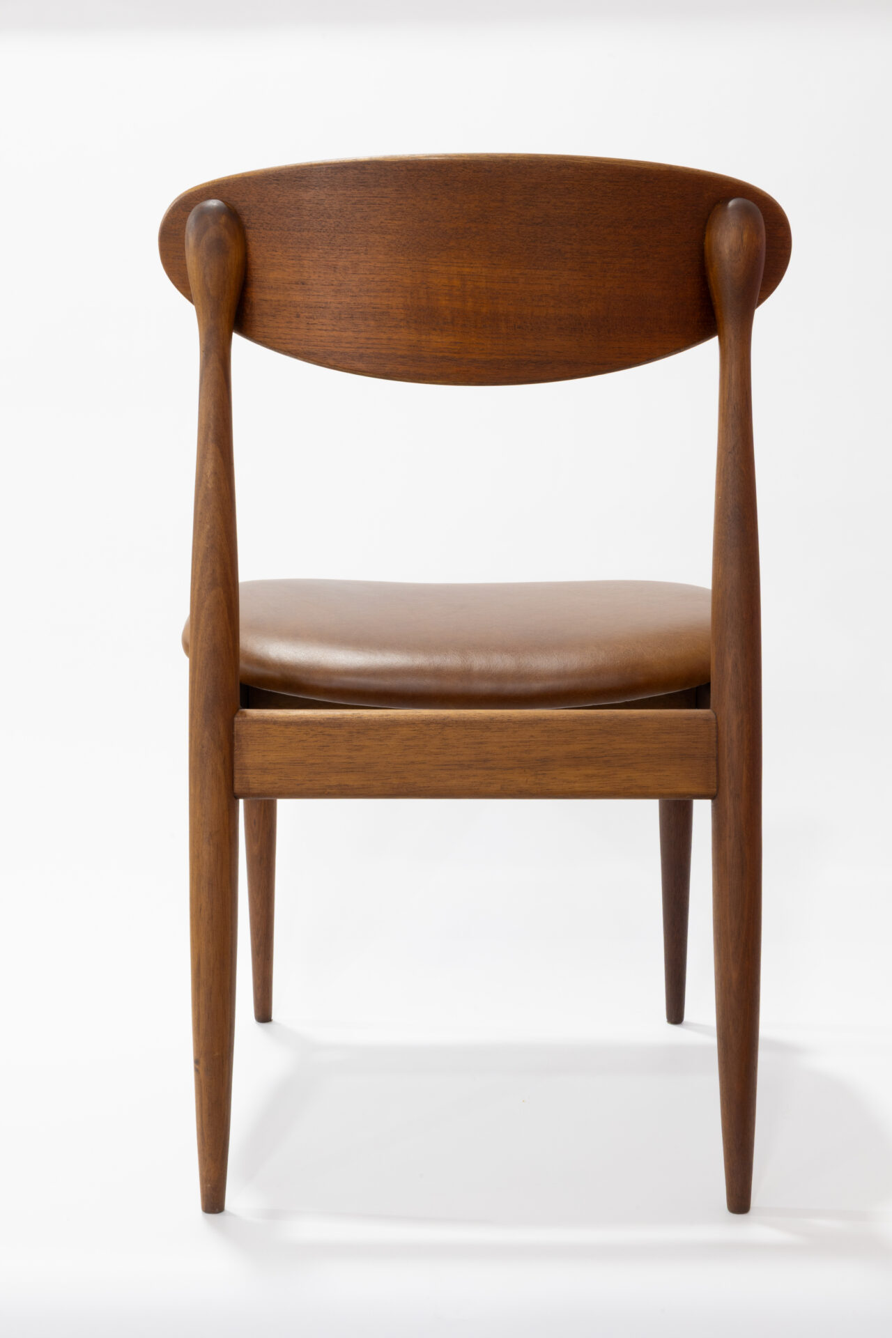 An iconic and increasingly rare piece from Parker, the Spade-back dining chair (Model 107) exemplifies the clean lines and sculptural elegance of Scandinavian mid-century design.