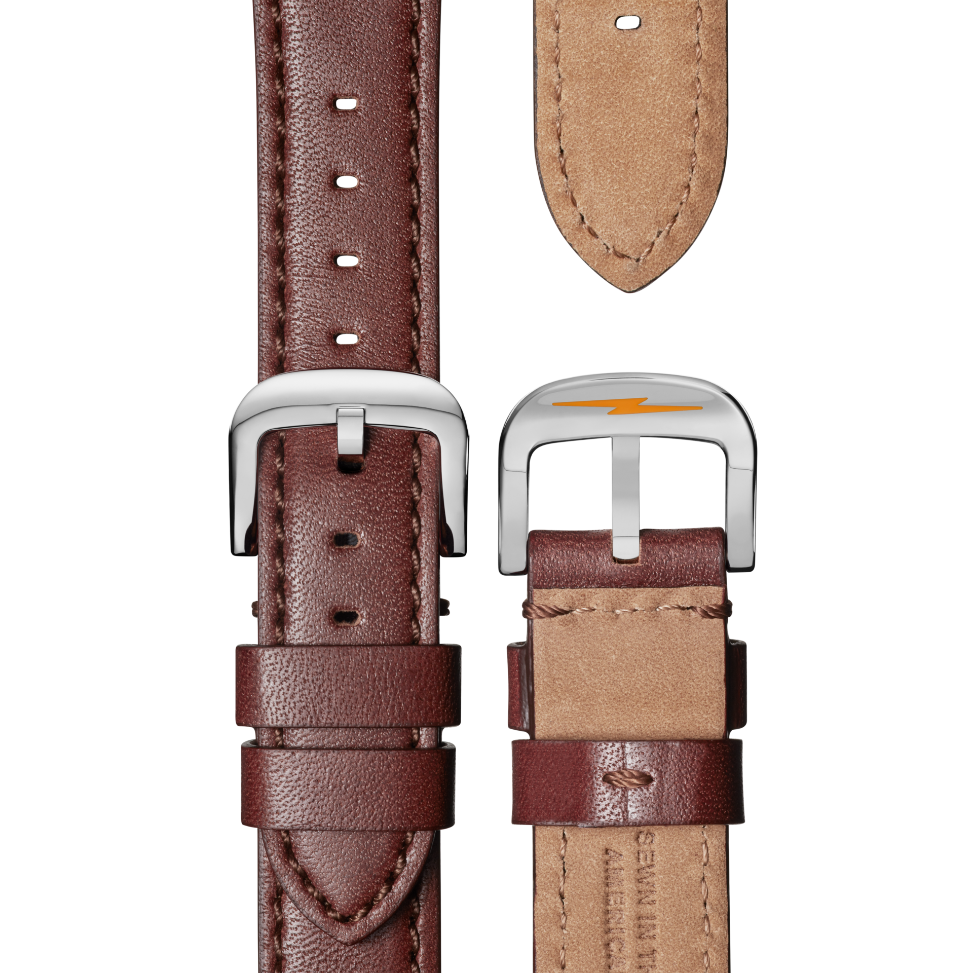 Dark Cognac leather strap, hand-sewn from premium American leather.